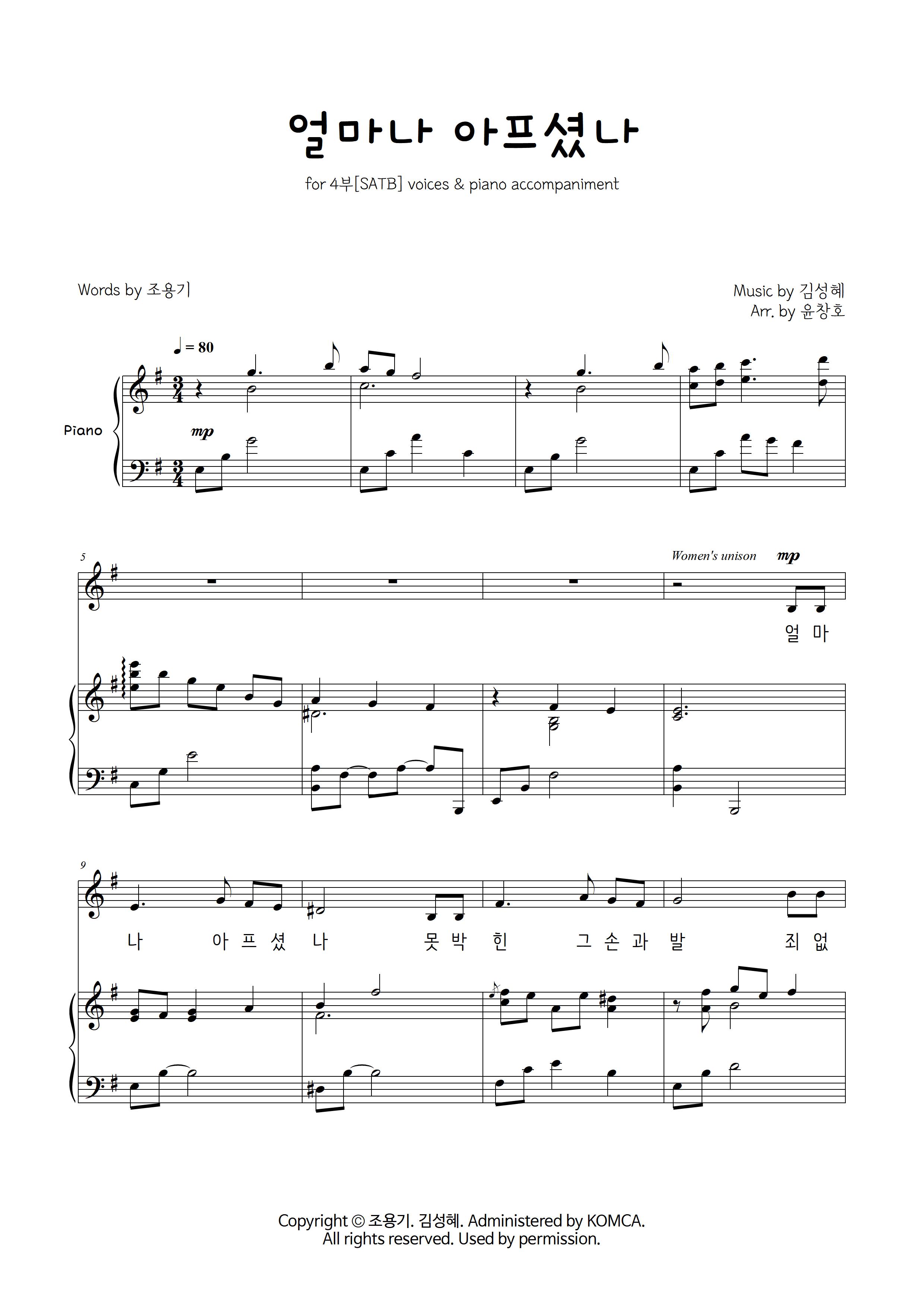 얼마나 아프셨나(혼성4부+피아노)악보 : 하모니엘